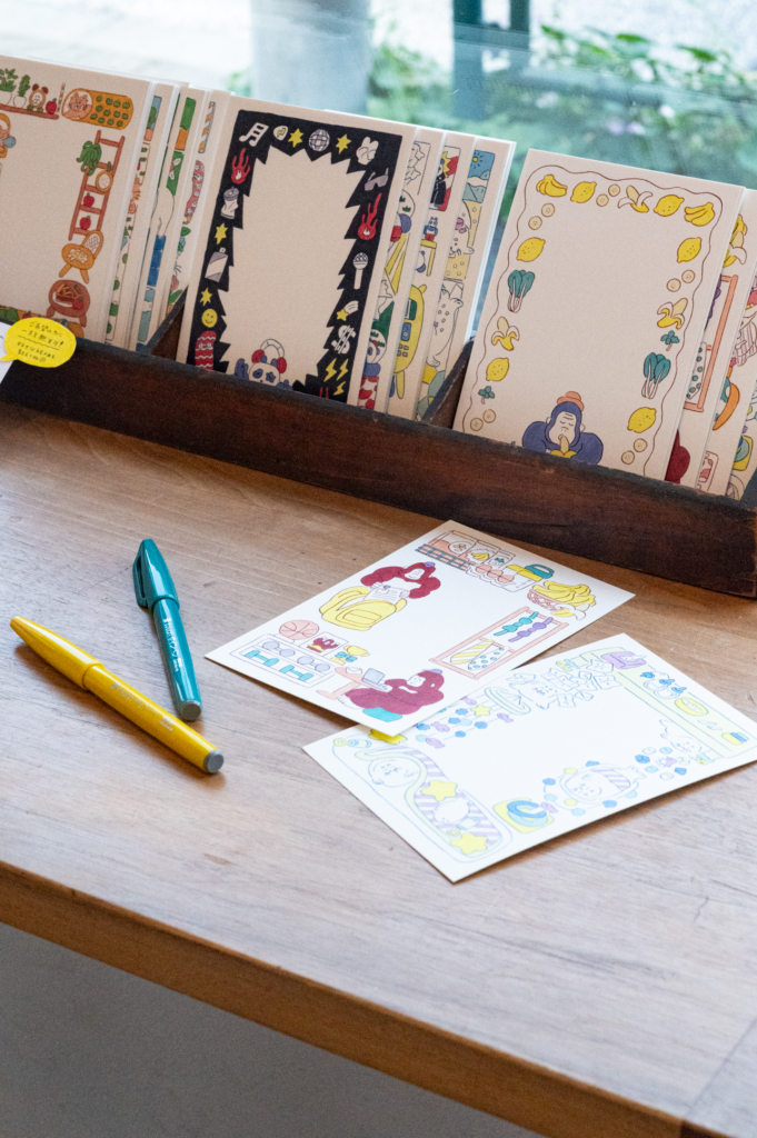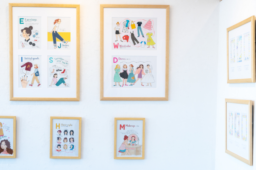 おしゃれにまつわるイラストエッセイ、いきものとお手紙をモチーフにしたポストカードイラストを展示します。