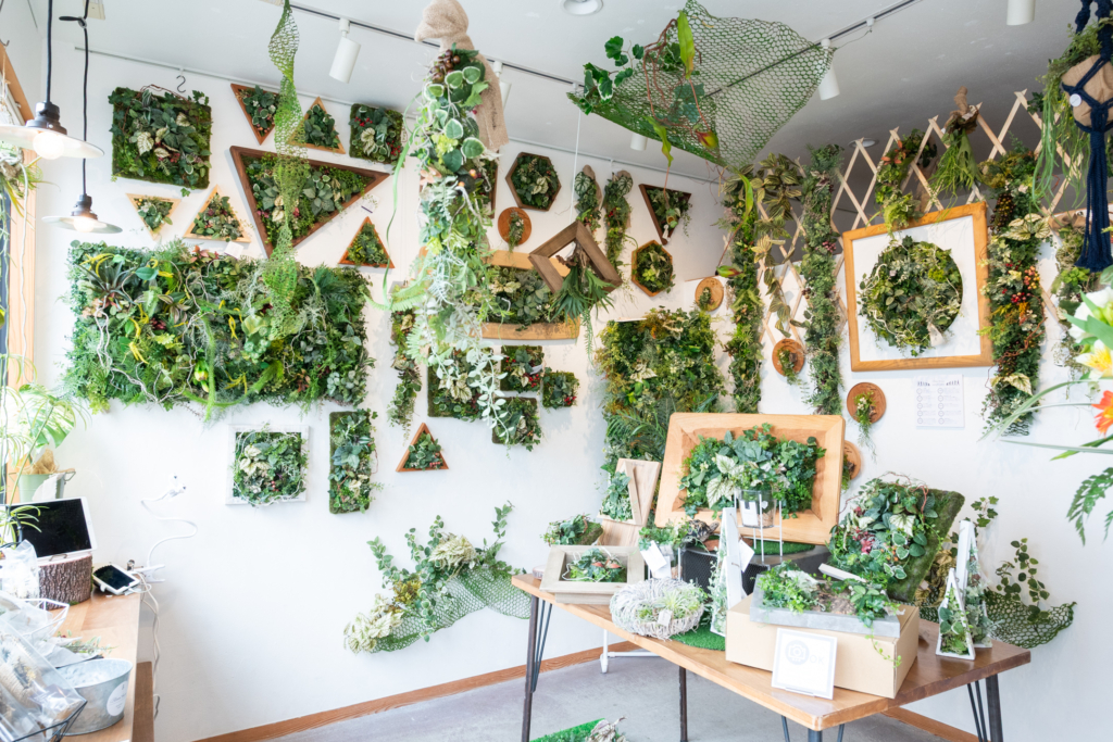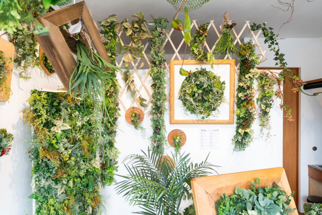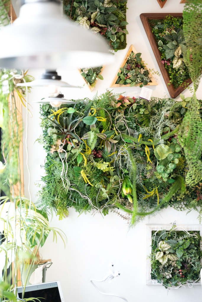 フラワーデザイナー江尻チハルが提案する水やり不要な3Dグリーンアート作品。