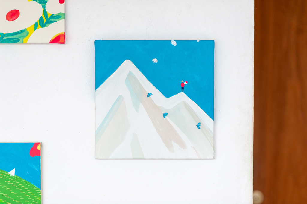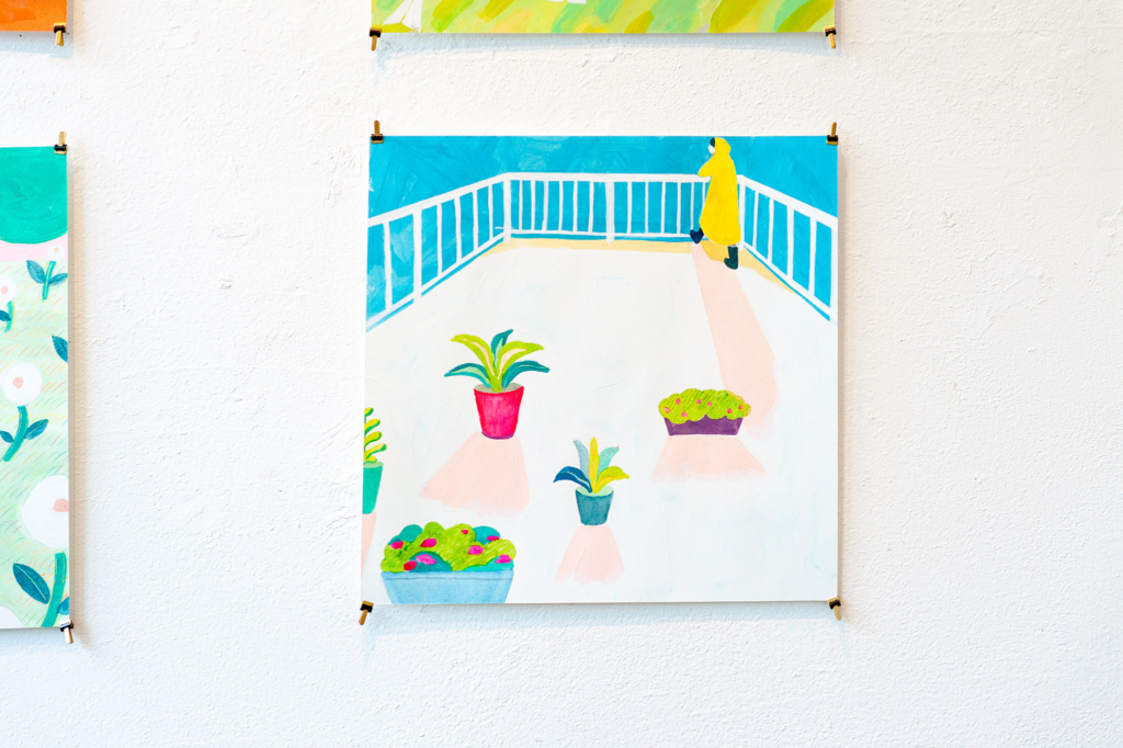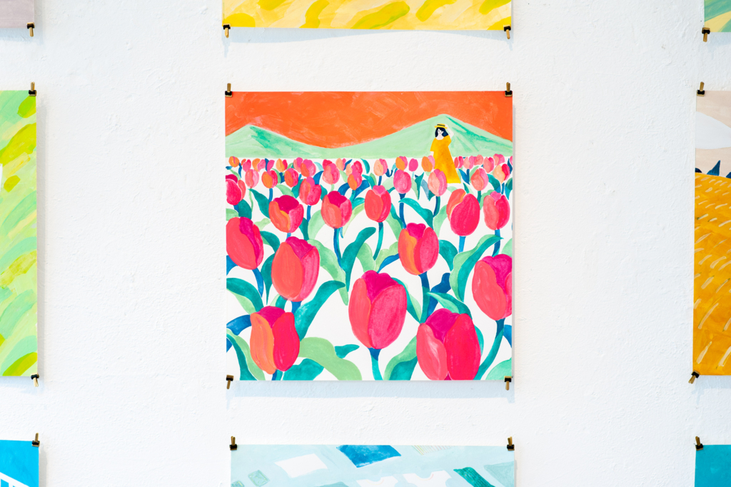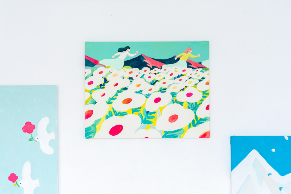 あざやかな色彩で、気持ちの良い絵を描くことを心がけながら作品を制作いたしました。