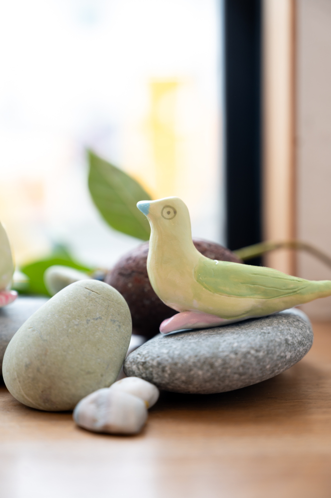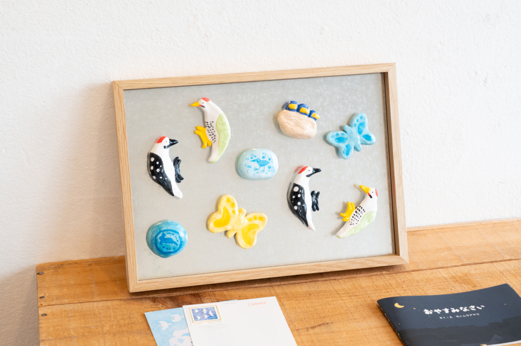 散歩や旅の中で出会った心がワクワクする景色、多様で個性豊かな生き物たち、そんな自然観察の時間が制作の原動力になっています。今回の展示は、そんな日常を集めた”いろとりどり”の空間。色や形がにぎやかに広がるひとときを、どうぞゆっくりとお楽しみください。