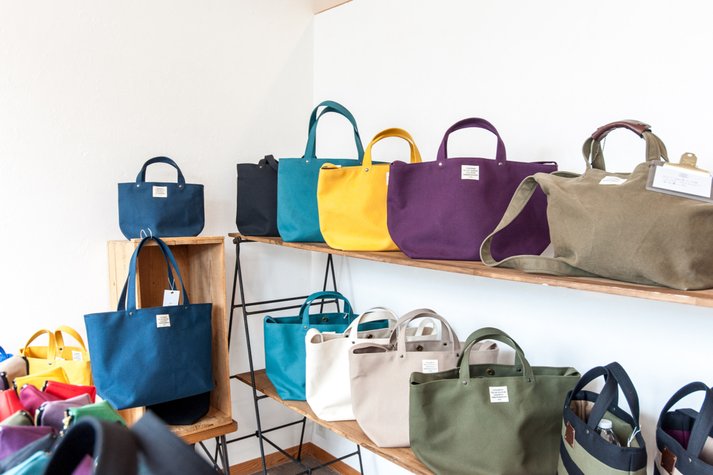 倉敷で織られた軽い8号帆布のカラフルなバッグ。