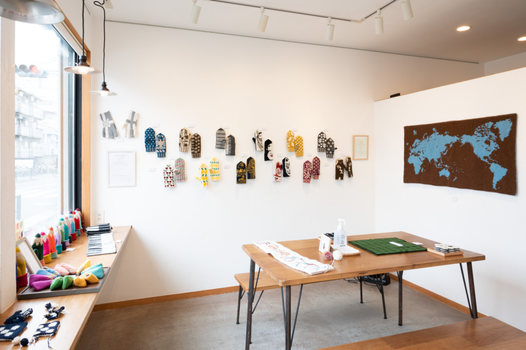 展示期間中は手編み作品の販売、