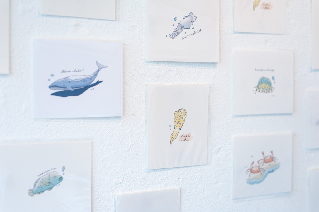 「海」をテーマに制作した小物や雑貨の販売、イラストなどの展示を行います。